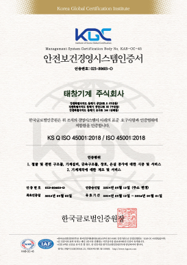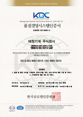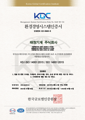 태창기계의 인증및 특허 입니다.